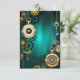 ジュエリー、金ゴールドチェーン付きの金ゴールドウォッチ、緑のテクスチャの背景の鍵。ステームパンクスタイル。
