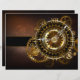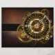 アンティーク、茶色の錆びた背景に金ゴールドと真鍮のギアとファンタスティックな時計。ステームパンクスタイル。