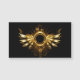 光沢のある機械的な翼、ギアと真鍮の丸いバナー。スチームパンク