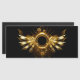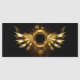 光沢のある機械的な翼、ギアと真鍮の丸いバナー。スチームパンク