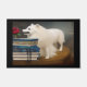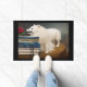 スティームパンク動物AI.犬と本のデザイン。非常にスチームパンク。人工知能が作品を作り出した。ようこそ私たちの家へ。カスタマイズ可能なドッグマット。ドアマットに本を置いたカスタマイズ可能なアメリカのエスキモー犬。本素晴らし好きの方へ。素晴らし愛犬家。