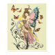 ピンクと青の翼を持つブロンドのスチームパンクの妖精。妖精は明るい黄色の背景の上の帽子、コルセットとストライプのストッキング、蝶、時計、ギア、部族のデザインと可愛い服を着ている