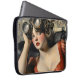 赤いドレスを着た女性が頭にギアを被ったスチームパンクのラップトップまたはタブレットのスリーブ。