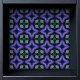 この幾何学的な壁紙は、紫、藍、およびティール(緑がかった色)クロスの小さなプリントを備えている。そのプリントにはステンドグラスを連想させる詳細がある。壁に使用できるが、このパターンは、特にライニングの引き出し、棚の背面、その他の家具の表面のために作られた剥離とシールの壁紙のコレクションの一部である。