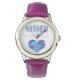 可愛い人魚カスタムハート紫色の女性時計。青、紫、緑の水色で彩られた美しいフォントに書は、ことわざ「ハートでマーメイド」が付いている。青、紫、緑のハートと人魚で完成はかりで測。