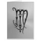 (占星術の)十二宮図の印の《星座》乙女座のためのこの重く様式化された記号に無地のな鉄から投げられることの出現があります。 影は記号をこのカードの表面の上でちょうど浮かぶようである作るステンレス鋼の背景に落ちます。