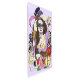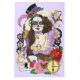 シュガー・スカル・メイクを着た死んだ女性のスチームパンクの日。主に紫の服を着ている。彼女のまわりには歯、スカル、バラ、鍵だ。