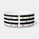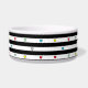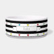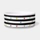 小さな色のハートと黒と白のストライプが入ったセラミックのペットフードボウルで、あなたの犬の名前のバナーが付いています。名前を入力するオプションを選ぶだけで、あなたの愛犬の名前を追加できます! とってもかわいい!