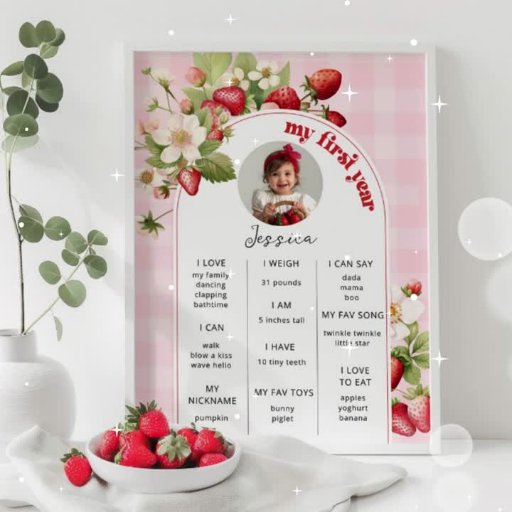 いちごベリー最初の1歳の誕生日パーティの招待状一致アイテム利用可能。