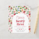 あなたの小さな大きな日のためのベリーの最初の誕生日の招待状!このデザインは、赤面のピンクの背景にイチゴと花の溝状のパターンを備え、文字のためのボホアーチオーバーレイを備えている。誕生日の女の子の名前は書、レトロなタイポグラフィの中で"ベリーの最初"とおもしろいスクリプトのレタリングにある。このデザインは、ガーデンパーティー、ティーパーティー、農園をテーマにしたファーマーズマーケットパーティー、ピクニック、その他の夏のお祝いに使用できる!Zazzleの予算選択の一部として、このシートは標準的なカー来ドサイズではない。このデザインを標準カードで取得するには、コレクション内で見つけるか、Zazzle Make Machineを使用して希望の製品に転送する。このページにリンクされているコレクションを表示して一致するアイテムを探すか、弊社のストアにアクセスして最初のバースデーパーティ招待状を探す。