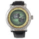 スネアドラム~楽譜~グリーン/金ゴールド背景 腕時計