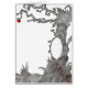 赤いリンゴが節のある枝にぶら下がっている白黒の手描き画像。