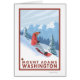 スノーボーダーシーン – 山アダムス,ワシントン – Vintage Travel Posterは2007年に作成された。この画像はWAの山・アダムスのシーンを描いている。