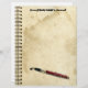 ここに本当におもしろい文房具がある。古いスパイラル連結仕訳帳の外観。そのページは世界中で君と一緒に汚れているように見えるインクの汚れのある底部のインクペン。この文字は型が擦り切れたある。この文房具は文字におもしろいを入書れる。