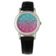 スパークリーブルーダークピンクのグラデーショングリッター 腕時計