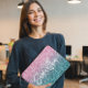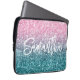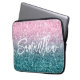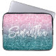 豪華なライトピンクとティール(緑がかった色)のラップトップスリーブのグラデーショフェイクンを特徴とする独自のグリッターケースを作成する。名前の後ろにモノグラムを追加し与えて、独自のパーソナライズされたデザインを作モノグラムの成する。このパーソナライズされた文字には手書きモダンのレタリングブラシスタイル書の台本がある。このカスタマイズデザインの文字とフォントスタイル。