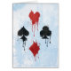 これらのグラフィックティースや他のアイテムは、滴り落ちるスプレーのステンシルルックを持つカード絵を描スーツのイメージを持つ。