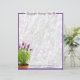 テラポットに入ったスペインラベンダーを、淡い背景の写真の前に置いたイメージは、フラワーストア、ラベンダー農園、ホスピタリティ業界、イベント会場などの美しいビジネスレターのヘッダーになります... といった感じで!