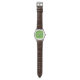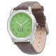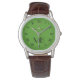 緑の背景にゴルフボールとクラブを持つスポーティなメンズウォッチ。鋭い素晴らしパーソナライズされたゴルファーまたはゴルフ用ファンのためのギフトアイディア