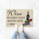 ワインの酒飲みのためのおもしろいなノベルティの玄関マットのデザイン。 設計特微1本のそれの赤ワインが付いているワイングラスの隣のワイン。 ワイングラスおよびと共にワイン・ボトルはブドウです。 ワイン・ボトルおよびガラスの左側に喜んでスマイルと受け入れられるワイン配達を言う黒いフォントの文字はあります。 このおもしろいで、かわいいワインのノベルティのデザインによってはワイン愛好家のために完全家へ帰ります装飾がです。 素晴らしい引っ越し祝いパーティーのギフトを作ります。