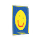 青い背景に微笑む緑の目をした黄色い太陽。独自の文字を追加選択した黄色を縁ど削除すもしる。