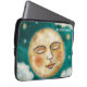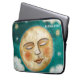 この保護平和な眠る月のラップトップスリーブとスタイルにあなたのラップトップ。豊かなティール(緑がかった色)の空に対して設定されたデザインは、穏やかな天のtouchのためのきらめくソフトな雲とサイフェイクンストーンの星を備えている。お客様のテクノロジーに魅力と保護を追加するのに最適