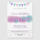そしてスタイリッシュおもしろいの誕生日の招待状は女の子やティーンの眠りのパーティーのために。レタリングにモダンはかわいらしグロー効果とパゼルピンク、紫、青/ティール(緑がかった色)色を使用し、デザインは紫色の星で仕上げられる。すべてのパーティー詳細でカスタマイズ可能。