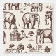この豪華な壁紙は、灰色のアフリカ象のセットとセピア色のスタイルのランドマークを備えている。