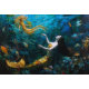 "セラピナ" – 美しい神秘的な人魚。水中競技の夢の風景:この穏やかな超現実的な水中の設定では飾、黄金の魚の尾を持つ美しい人魚のメイドが海底に横たわり、流れる髪が青い海の流れの中に漂素晴らしう。タコや魚のような好奇心の強い人間を含む周りの海の生き物鮮やかは、その場に生命を与える。プレラファエリスタイルの繊細な色数々ののトーンと複雑な詳細は、この魅惑的で落ち着いた写真を作る。