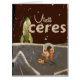 セレス矮星ヴィンテージ旅行ポスター。Maxと彼の犬をフィーチャーするこのヴィンテージ旅行ポスターでセレスへの旅を行くと、背景には可愛いレトログリーンのロケットが搭載されている。