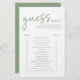 このシックでミニマリストな誰のゲームであなたのブライダルシャワーをスパイス!この単にモダンセージと白いデザインでクラシックゲームにエレガントひねりを持つ。This Guess モダン Whoゲームは、花嫁と彼女のゲストが混じり合って笑いを得るのに最適なアクティビティである。クリーンでミニマルなスタイルにより、あらゆるスタイリッシュブライダルシャワーお祝いにtouchを追加。会話カスタマイズと笑いを刺激するカップルに関するおもしろいの質問とゲームカード。