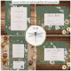 このデザインは、繊細な野の花やシダがセージ色の背景に描かれています。このカードは、Simply Farmhouse Press によって作成された「チャコールに咲く野の花のウェディングスイート」の一部です