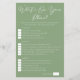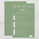 屋外のフォレストパーティーにぴったりな、シックなセージグリーンのブライダルシャワーゲーム「スマホの中身」。友達のための独自のポイントオプションで、これらのトレンディな紙のシートをパーソナライズ。楽しいカスタマイズ可能なブライズパーティーゲーム。