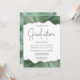 このトレンディー卒業式パーティーの招待は、シルバ縁どグリッターのハイライトとセージの緑の色合いでの水色のアゲイトのトップとボトムをフェイク特徴としている。装飾的な手書きフォントで銀フェイクグリッターに「卒業式モダン」という言葉が現れる。カスタマイズは、サルージグリーンの卒業生の名前と白い背景の木炭グレーのパーティー詳細の名前で招待。裏面には緑色と銀酸が一致する画像が現れる。