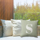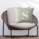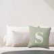 セージ緑のイニシャルモノグラムの屋外の枕。イニシャル付きの装飾的な屋外独身の枕。素早く簡単にパーソナライズ。