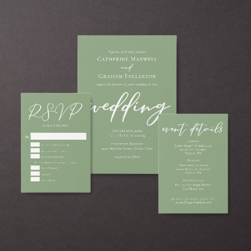 セージグリーンホワイトタイポグラフィカスタムウェディング