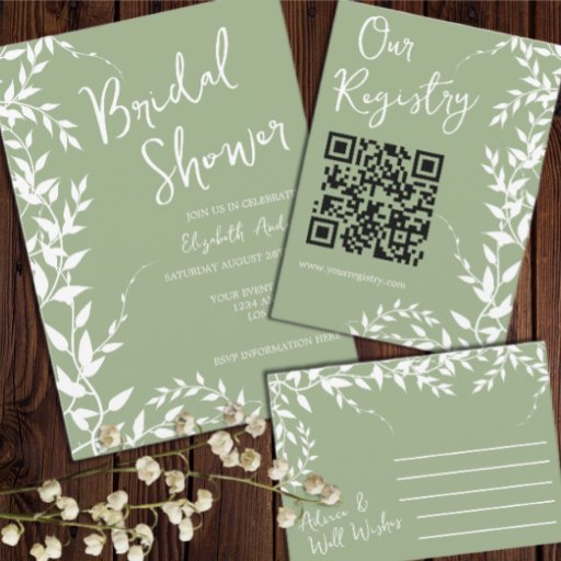 セージグリーンボタニカル離れブライダルシャワー アクリル招待状