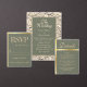 葉ラインアートのセージ緑とエレガントなモダン結婚式の招待状。このカードは簡単にあなたの個人文字で編集できる。