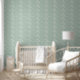 セージグリーン&クリームリーフパターン壁紙 壁紙