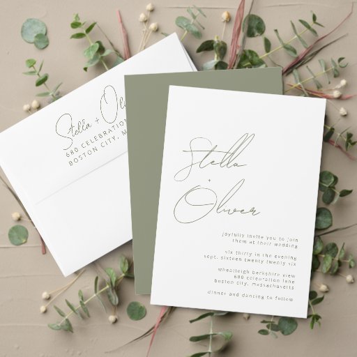 とモダン書をミニマルセージ緑の結婚式の引き出物ボックスでスクリプト。