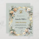 セージの緑の背景。白飾と黄色の花模様と金色のリボン名前、年齢、詳細をカスタマイズして追加する。1枚= 1枚の招待状を印刷したエッジからエッジ