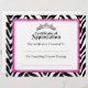 © 2013年ソシエライトデザイン。私たちのガーリー感謝デザインの証明書は、銀ティアラ/クラウン、ゼブラストライプのパターンの背景とピンクのレースの斜面証明書のエッジを持っている。素晴らしいページェント証明書。