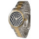 このゼブラの毛皮のパターンの写真で時計のおもしろいを持っている。