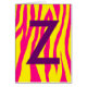 黄色とピンクのゼブラ印刷のグリーティモノグラムのングカード。