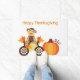 大きお洒落いオレンジ色のカボチャとカスタマイズ可能な感謝祭の白い背景の文字と自転車に乗る靴下モンキー