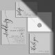 このミニマルなセーブ・ザ・デートカードは、美しいソフトグレーの色合いとエレガントなカリグラフィー・スクリプトを組み合わせたデザインが特徴です。モダンでシンプルなデザインは、春、夏、冬、秋のどの季節にもぴったりで、クラシックでスタイリッシュな雰囲気を醸し出します。ロマンチックでおしゃれ、または洗練されたウェディングテーマに最適です。