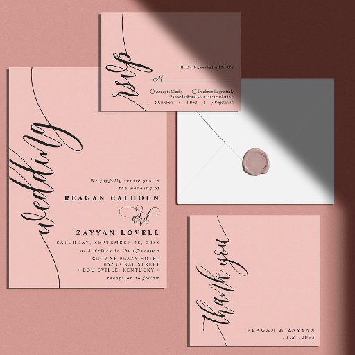 Soft Coral Pink Modern Minimalist Script Weddingデザイン: Sonya Bernhart