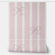 柔らかいピンクと麻の色の垂直ストライプの壁紙ほこりっぽいピンクの手で弓を引いた。