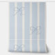 柔らかいブルーとリネン色のストライプの縦壁紙ほこりっぽいブルーの手で弓を引く。