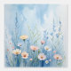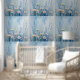 ソフトブルー&パステルフローラムラルピールアンドスティック 壁紙